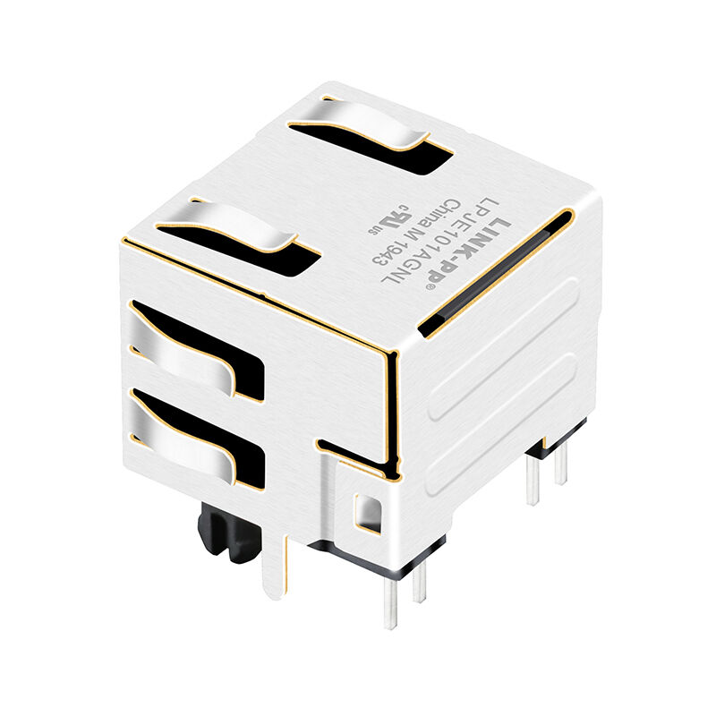 इस कनेक्टर में एक दायां-कोण (क्षैतिज) थ्रू-होल डिज़ाइन, एकीकृत EMI परिरक्षण पैनल उंगलियों के साथ, और दोहरी एलईडी संकेतक नेटवर्क लिंक और गतिविधि स्थिति के लिए हैं।